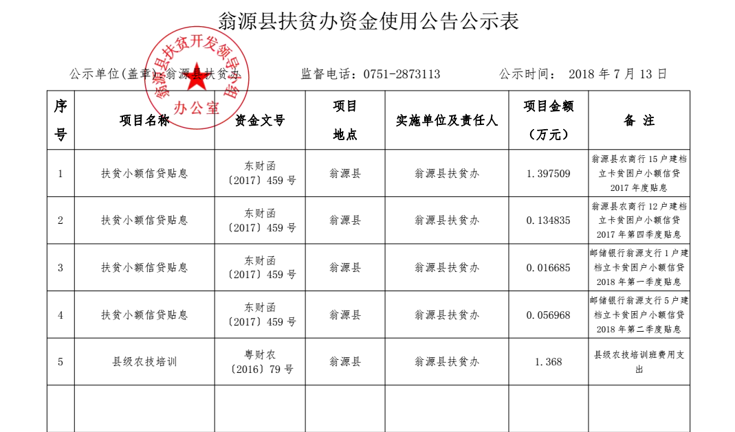 翁源县扶贫办资金使用公告公示表