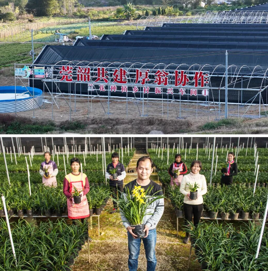 在江尾镇万艺电商文创中心,直播间里工作人员正热情推介兰花,发货车间内十余名工人忙着给兰花打包装盒,发往全国各地。这个由工作队重点扶持的企业,已从小电商成长为集种植、栽培、电商、仓储于一体的综合性龙头。